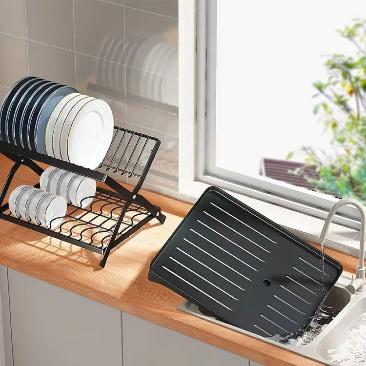 Da. Datorită designului pliabil și compact, scurgătorul poate fi pliat rapid pentru economisirea spațiului atunci când nu este utilizat.